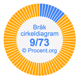 Dessutom kommer vi också att illustrera bråket 9/73 i ett cirkeldiagram och 9/73 som procent i ett cirkeldiagram.