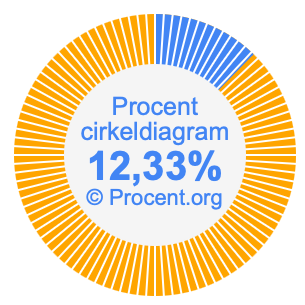 Illustrationerna nedan visar hur 9/73 och 12,33% delar upp ett cirkeldiagram olika men täcker samma område eftersom de är desamma.