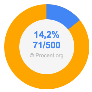 Den följande bilden visar 14,2 procent och 14,2 som bråk i ett cirkeldiagram. Som du nu vet, är 14,2% detsamma som 71/500.