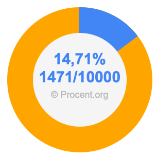Den följande bilden visar 14,71 procent och 14,71 som bråk i ett cirkeldiagram. Som du nu vet, är 14,71% detsamma som 1471/10000.