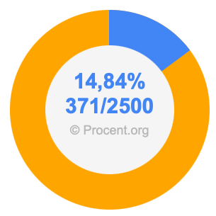 Den följande bilden visar 14,84 procent och 14,84 som bråk i ett cirkeldiagram. Som du nu vet, är 14,84% detsamma som 371/2500.