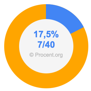 Den följande bilden visar 17,5 procent och 17,5 som bråk i ett cirkeldiagram. Som du nu vet, är 17,5% detsamma som 7/40.