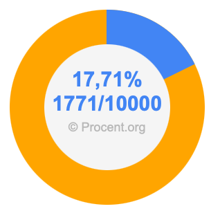 Den följande bilden visar 17,71 procent och 17,71 som bråk i ett cirkeldiagram. Som du nu vet, är 17,71% detsamma som 1771/10000.