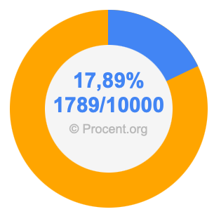 Den följande bilden visar 17,89 procent och 17,89 som bråk i ett cirkeldiagram. Som du nu vet, är 17,89% detsamma som 1789/10000.