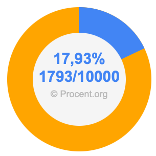 Den följande bilden visar 17,93 procent och 17,93 som bråk i ett cirkeldiagram. Som du nu vet, är 17,93% detsamma som 1793/10000.