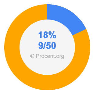 Den följande bilden visar 18 procent och 18 som bråk i ett cirkeldiagram. Som du nu vet, är 18% detsamma som 9/50.