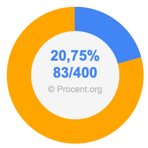 Den följande bilden visar 20,75 procent och 20,75 som bråk i ett cirkeldiagram. Som du nu vet, är 20,75% detsamma som 83/400.