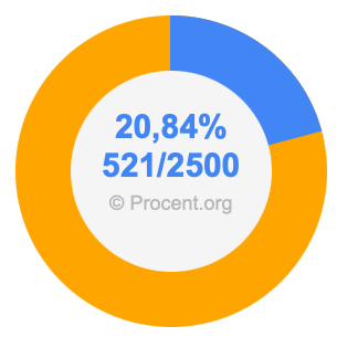 Den följande bilden visar 20,84 procent och 20,84 som bråk i ett cirkeldiagram. Som du nu vet, är 20,84% detsamma som 521/2500.