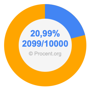 Den följande bilden visar 20,99 procent och 20,99 som bråk i ett cirkeldiagram. Som du nu vet, är 20,99% detsamma som 2099/10000.