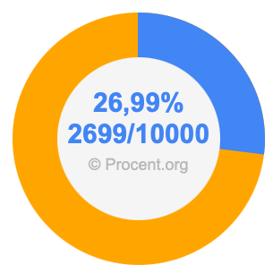 Den följande bilden visar 26,99 procent och 26,99 som bråk i ett cirkeldiagram. Som du nu vet, är 26,99% detsamma som 2699/10000.