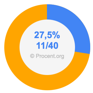 Den följande bilden visar 27,5 procent och 27,5 som bråk i ett cirkeldiagram. Som du nu vet, är 27,5% detsamma som 11/40.