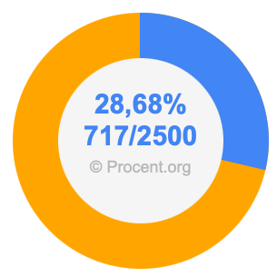 Den följande bilden visar 28,68 procent och 28,68 som bråk i ett cirkeldiagram. Som du nu vet, är 28,68% detsamma som 717/2500.