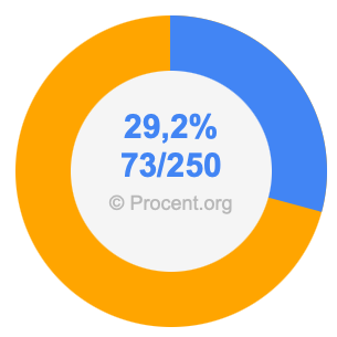 Den följande bilden visar 29,2 procent och 29,2 som bråk i ett cirkeldiagram. Som du nu vet, är 29,2% detsamma som 73/250.