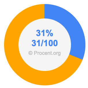 Procent betyder per hundra, så 31 procent betyder 31 per hundra. Du kan alltså sätta 31 i täljaren och 100 i nämnaren och göra 31 procent till ett bråk, så här: