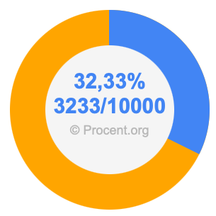 Den följande bilden visar 32,33 procent och 32,33 som bråk i ett cirkeldiagram. Som du nu vet, är 32,33% detsamma som 3233/10000.