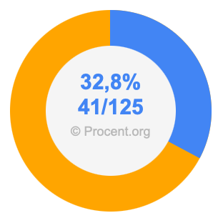 Den följande bilden visar 32,8 procent och 32,8 som bråk i ett cirkeldiagram. Som du nu vet, är 32,8% detsamma som 41/125.