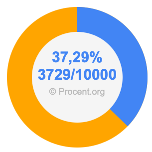 Den följande bilden visar 37,29 procent och 37,29 som bråk i ett cirkeldiagram. Som du nu vet, är 37,29% detsamma som 3729/10000.