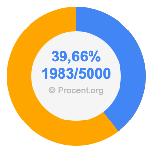 Den följande bilden visar 39,66 procent och 39,66 som bråk i ett cirkeldiagram. Som du nu vet, är 39,66% detsamma som 1983/5000.