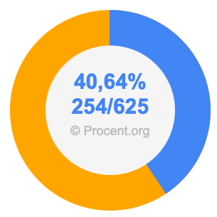Den följande bilden visar 40,64 procent och 40,64 som bråk i ett cirkeldiagram. Som du nu vet, är 40,64% detsamma som 254/625.