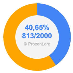 Den följande bilden visar 40,65 procent och 40,65 som bråk i ett cirkeldiagram. Som du nu vet, är 40,65% detsamma som 813/2000.