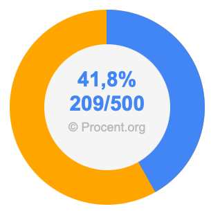 Den följande bilden visar 41,8 procent och 41,8 som bråk i ett cirkeldiagram. Som du nu vet, är 41,8% detsamma som 209/500.