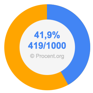 Den följande bilden visar 41,9 procent och 41,9 som bråk i ett cirkeldiagram. Som du nu vet, är 41,9% detsamma som 419/1000.