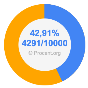Den följande bilden visar 42,91 procent och 42,91 som bråk i ett cirkeldiagram. Som du nu vet, är 42,91% detsamma som 4291/10000.