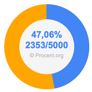 Den följande bilden visar 47,06 procent och 47,06 som bråk i ett cirkeldiagram. Som du nu vet, är 47,06% detsamma som 2353/5000.