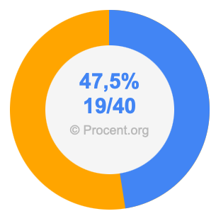 Den följande bilden visar 47,5 procent och 47,5 som bråk i ett cirkeldiagram. Som du nu vet, är 47,5% detsamma som 19/40.