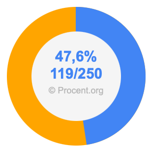 Den följande bilden visar 47,6 procent och 47,6 som bråk i ett cirkeldiagram. Som du nu vet, är 47,6% detsamma som 119/250.