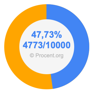 Den följande bilden visar 47,73 procent och 47,73 som bråk i ett cirkeldiagram. Som du nu vet, är 47,73% detsamma som 4773/10000.