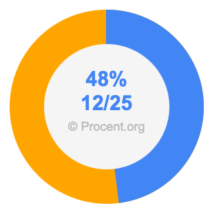 Den följande bilden visar 48 procent och 48 som bråk i ett cirkeldiagram. Som du nu vet, är 48% detsamma som 12/25.