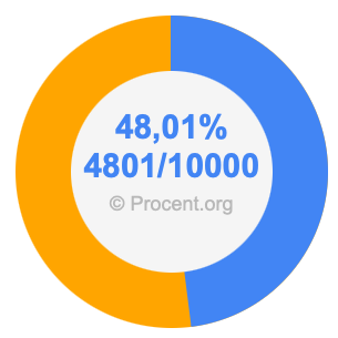 Den följande bilden visar 48,01 procent och 48,01 som bråk i ett cirkeldiagram. Som du nu vet, är 48,01% detsamma som 4801/10000.