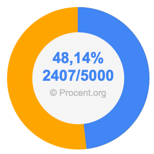 Den följande bilden visar 48,14 procent och 48,14 som bråk i ett cirkeldiagram. Som du nu vet, är 48,14% detsamma som 2407/5000.