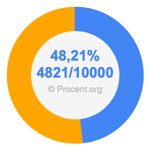 Den följande bilden visar 48,21 procent och 48,21 som bråk i ett cirkeldiagram. Som du nu vet, är 48,21% detsamma som 4821/10000.