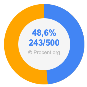 Den följande bilden visar 48,6 procent och 48,6 som bråk i ett cirkeldiagram. Som du nu vet, är 48,6% detsamma som 243/500.