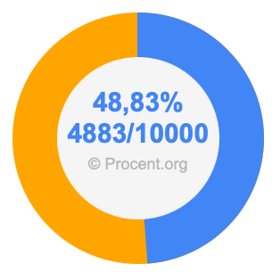 Den följande bilden visar 48,83 procent och 48,83 som bråk i ett cirkeldiagram. Som du nu vet, är 48,83% detsamma som 4883/10000.