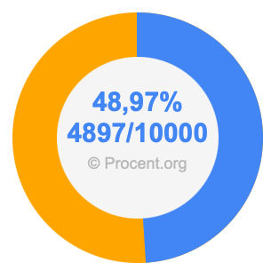 Den följande bilden visar 48,97 procent och 48,97 som bråk i ett cirkeldiagram. Som du nu vet, är 48,97% detsamma som 4897/10000.