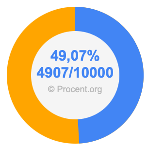 Den följande bilden visar 49,07 procent och 49,07 som bråk i ett cirkeldiagram. Som du nu vet, är 49,07% detsamma som 4907/10000.