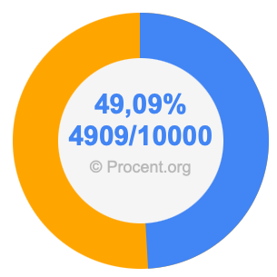 Den följande bilden visar 49,09 procent och 49,09 som bråk i ett cirkeldiagram. Som du nu vet, är 49,09% detsamma som 4909/10000.