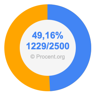 Den följande bilden visar 49,16 procent och 49,16 som bråk i ett cirkeldiagram. Som du nu vet, är 49,16% detsamma som 1229/2500.