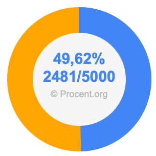 Den följande bilden visar 49,62 procent och 49,62 som bråk i ett cirkeldiagram. Som du nu vet, är 49,62% detsamma som 2481/5000.