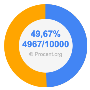 Den följande bilden visar 49,67 procent och 49,67 som bråk i ett cirkeldiagram. Som du nu vet, är 49,67% detsamma som 4967/10000.