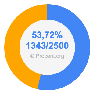 Den följande bilden visar 53,72 procent och 53,72 som bråk i ett cirkeldiagram. Som du nu vet, är 53,72% detsamma som 1343/2500.
