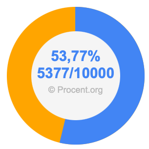 Den följande bilden visar 53,77 procent och 53,77 som bråk i ett cirkeldiagram. Som du nu vet, är 53,77% detsamma som 5377/10000.