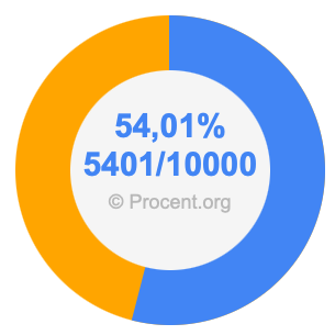 Den följande bilden visar 54,01 procent och 54,01 som bråk i ett cirkeldiagram. Som du nu vet, är 54,01% detsamma som 5401/10000.