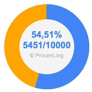 Den följande bilden visar 54,51 procent och 54,51 som bråk i ett cirkeldiagram. Som du nu vet, är 54,51% detsamma som 5451/10000.