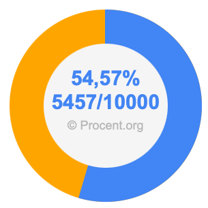 Den följande bilden visar 54,57 procent och 54,57 som bråk i ett cirkeldiagram. Som du nu vet, är 54,57% detsamma som 5457/10000.