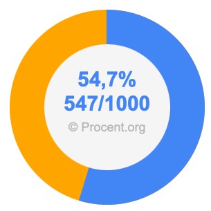 Den följande bilden visar 54,7 procent och 54,7 som bråk i ett cirkeldiagram. Som du nu vet, är 54,7% detsamma som 547/1000.