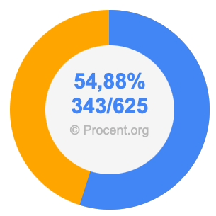 Den följande bilden visar 54,88 procent och 54,88 som bråk i ett cirkeldiagram. Som du nu vet, är 54,88% detsamma som 343/625.